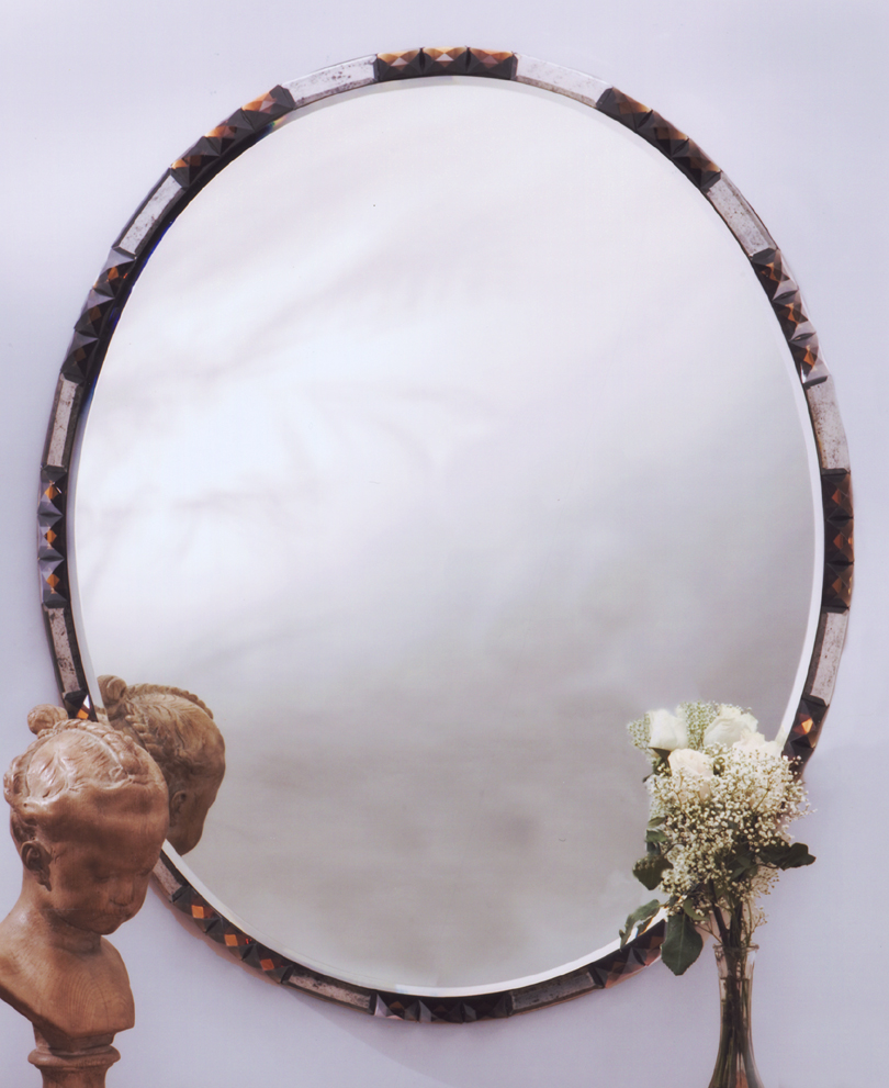 H43 W36 Oval Mirror with Beveled Baguette Border
