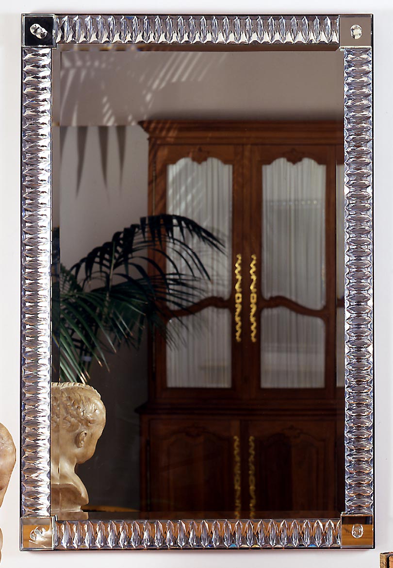 H50 W33 Art Deco Mirror w. Cut Crystal Panels