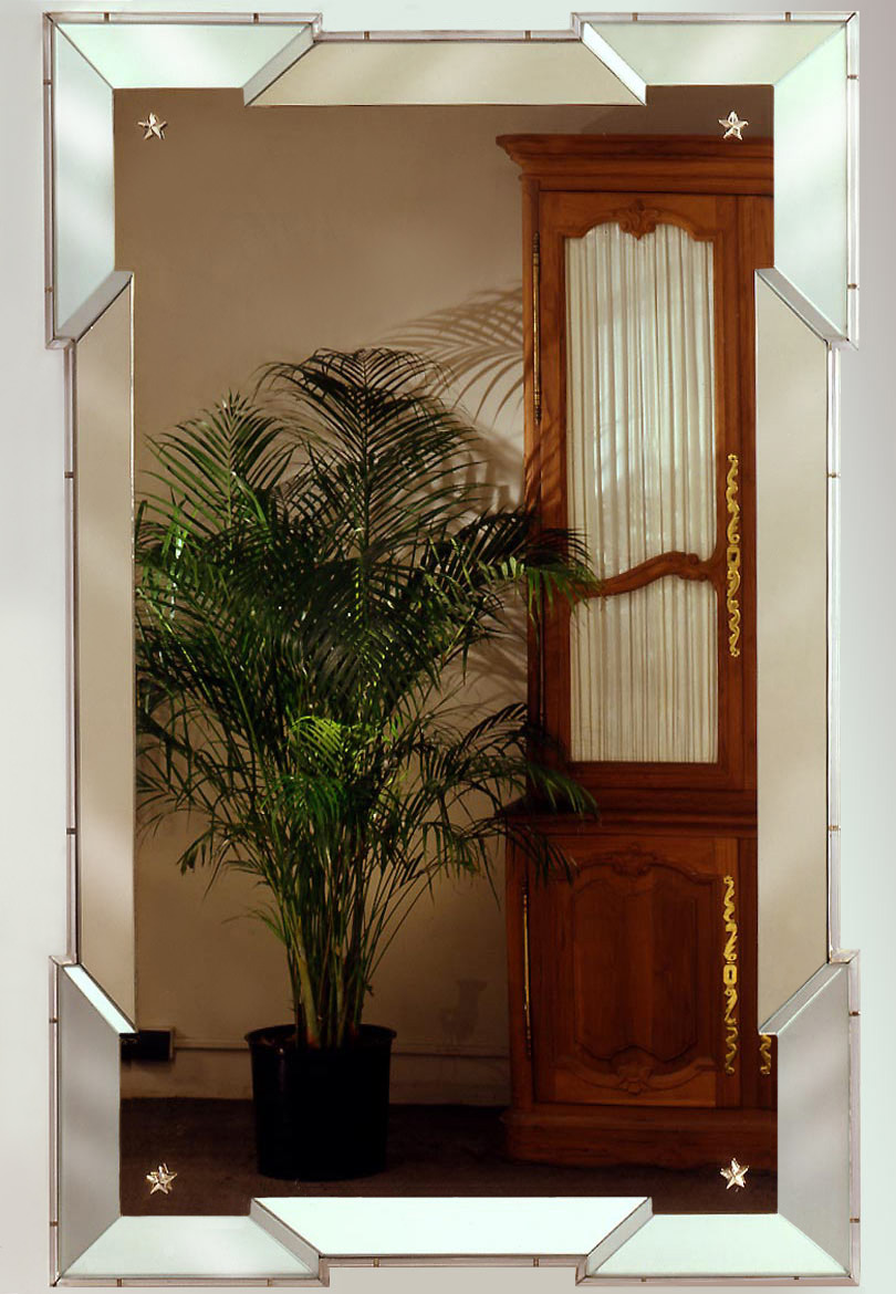 H48-1/2 W30-1/2 Art Deco Mirror with Outset Satin Mirrored Corners