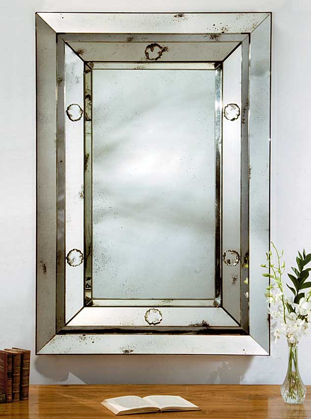H50 W34 Deco Style Wide Mirrored Frame with Round Chipped Rondels