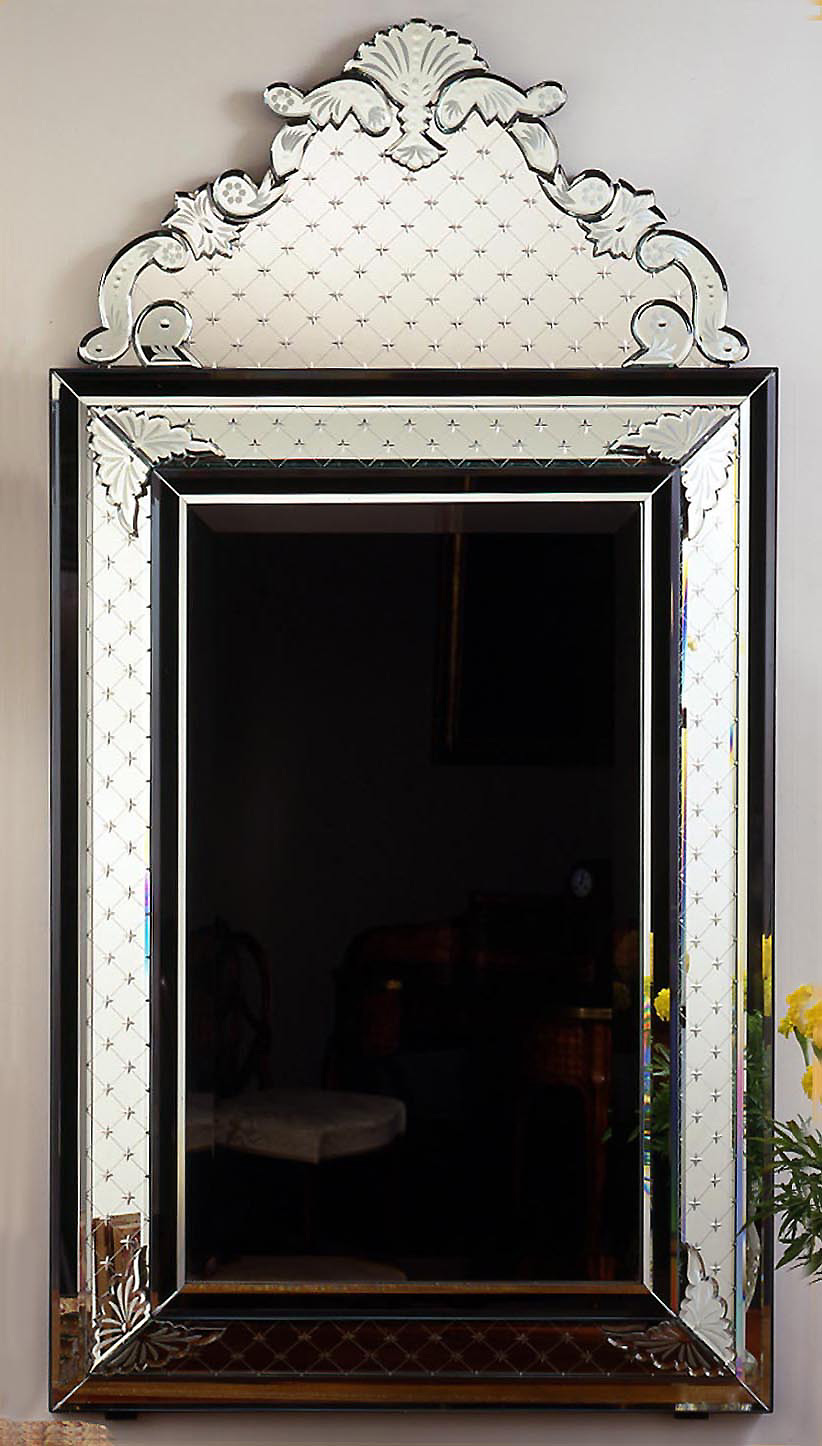 H62-1/2 W32-1/2 Venetian Style Mirror with Grid Design in Crest
