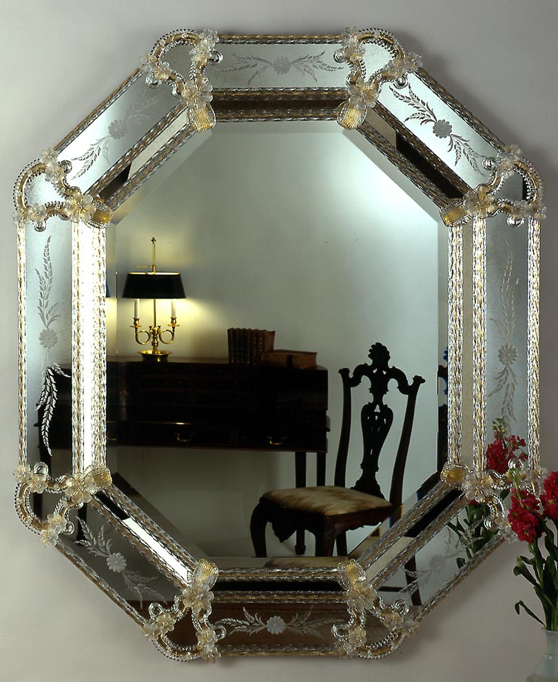 H48 W40 Octagonal Venetian Mirror with Pressed Gold Border