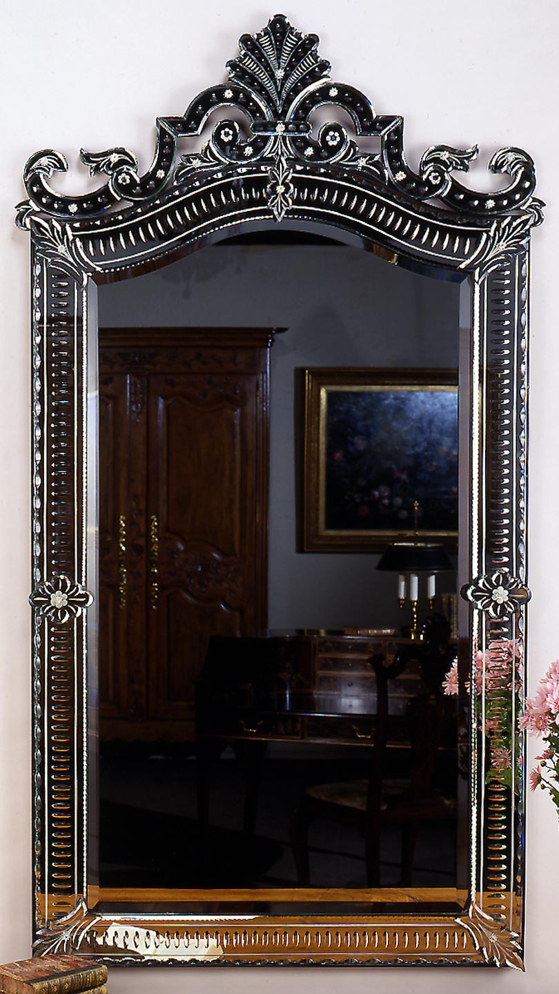 H64 W35 Venetian Mirror with Radial Designs in Border