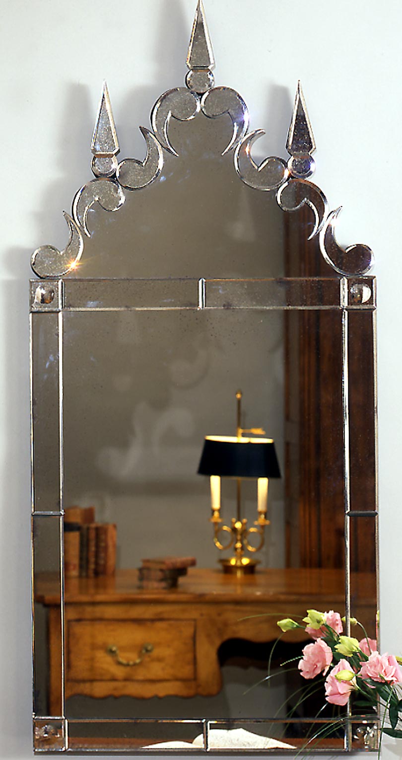 H52 W24 Plain Glass Mirror w. Spire Detail
