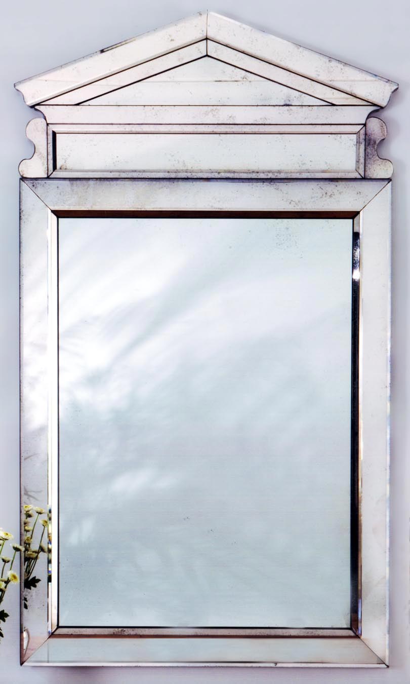 H60 W35 1/4 Carved Pediment Top Venetian Style Mirror