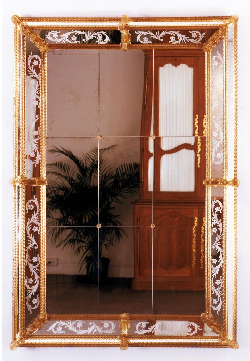 H61 W41 Murano Style Mirror with Engraved Panels & Antique Sectioned Mirror